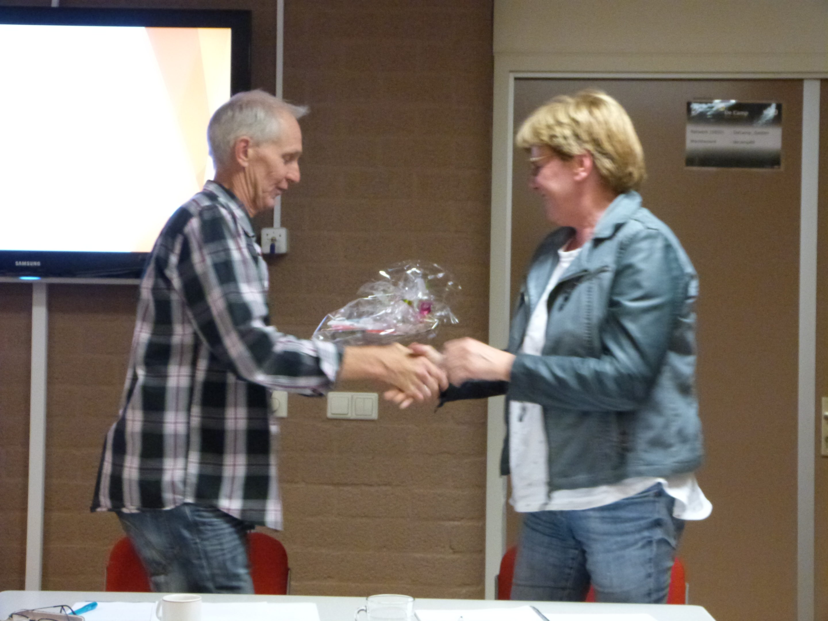 Tijdens de vergadering werd afscheid genomen van Jayne Baas, jarenlang was zij secretaris binnen het bestuur. Rien sprak een woord van dank voor haar uit en ze kreeg enkele presentjes overhandigd.