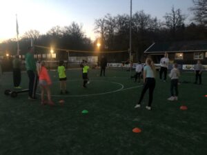 Gisteravond was het zover, de mini’s konden weer gaan trainen! Helaas zijn zaalsporten nog altijd niet toegestaan i.v.m. de coronamaatregelen, maar buiten sporten in teamverband is sinds vorige week voor de jeugd tot 27 jaar wel weer een optie. Minicoördinator Ilse Way: “De mini’s vonden het erg leuk; ze waren blij dat ze weer mochten trainen!”